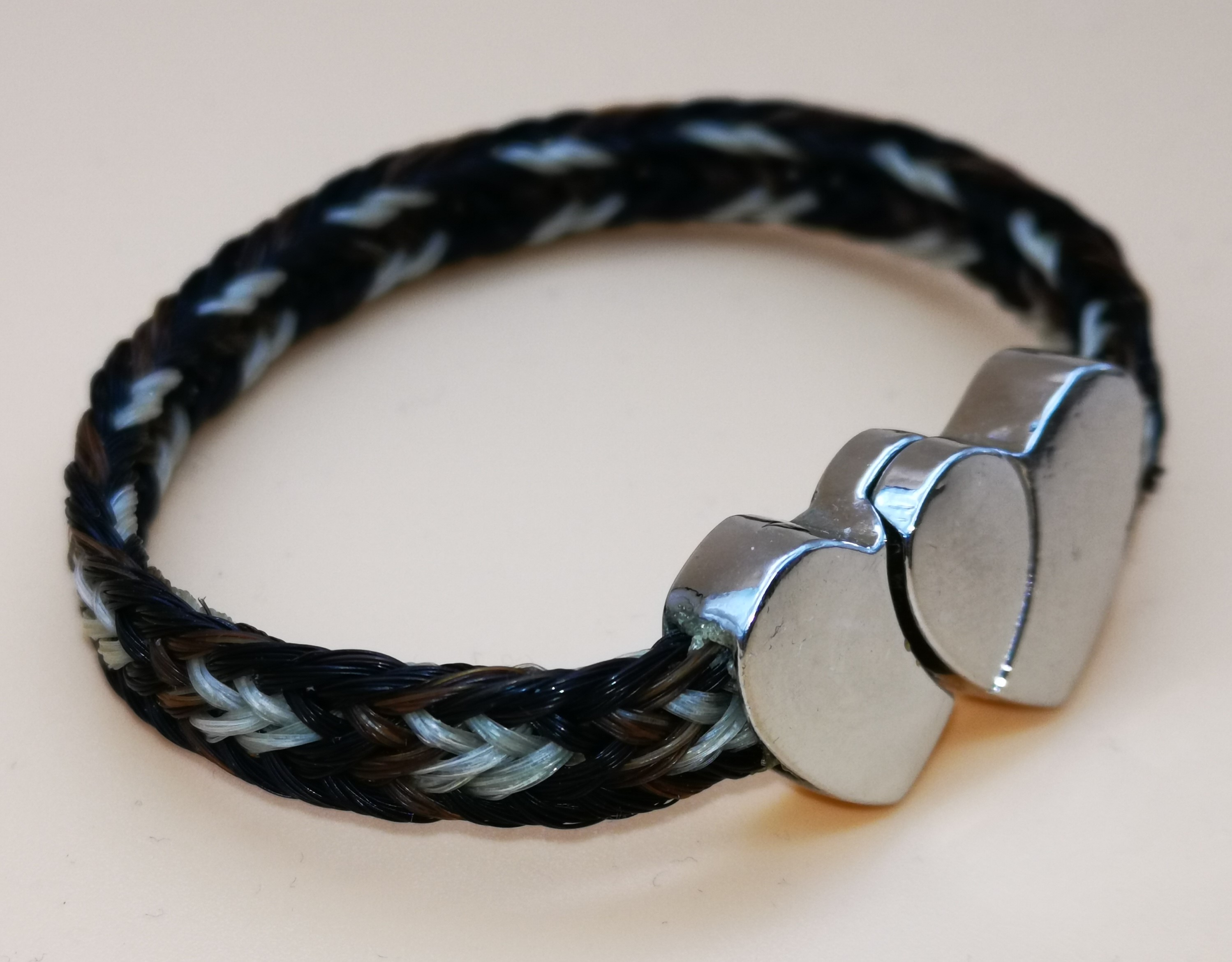 Auf der rechten Seite sehen Sie ein Armband aus einem flachen, dreifarbigen Band (16 Stränge).